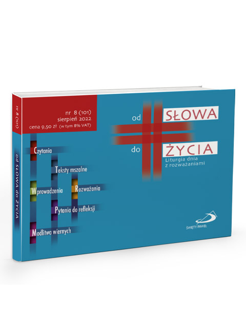Sierpniowy numer „Od Słowa do Życia” będzie nam towarzyszył w drugiej połowie wakacji. Niedzielne czytania zostały omówione w dziale Rok liturgiczny. Warto znaleźć chwilę czasu na refleksję na tymi tekstami, które zapraszają nas do czuwania w oczekiwaniu na przyjście naszego Pana. W dziale Katecheza liturgiczna kontynuowane jest omawianie treści Ogólnego wprowadzenia do Mszału rzymskiego. Tym razem analizujemy wskazania Episkopatu Polski po ukazaniu się nowego wydania. Miesięcznik to przede wszystkim pełne teksty liturgiczne na każdy dzień sierpnia, wśród których znajdziemy teksty na święto Przemienienia Pańskiego, św. Edyty Stein, patronki Europy, a także Mszy św. wigilii uroczystości Wniebowzięcia Najświętszej Maryi Panny.