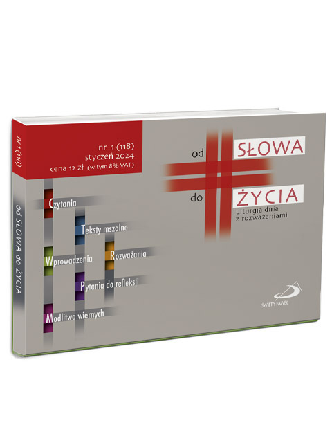 Teksty liturgiczne zamieszczone w styczniowym numerze miesięcznika liturgicznego „Od Słowa do Życia” nr 1/2024 są przeznaczone na część okresu, który rozpoczął się uroczystością Narodzenia Pańskiego przypadającą 25 grudnia, a zakończy świętem Chrztu Pańskiego, które w tym roku będzie obchodzone 7 stycznia. W poniedziałek następujący po tym święcie rozpoczyna się okres zwykły. W 2024 r. cykl niedzielny to rok B, co oznacza, że w niedzielę będziemy czytać Ewangelię według św. Marka, a w dni powszedni jest to rok parzysty, czyli drugi. W miesięczniku, jak zazwyczaj, korzystający z niego znajdą pełne teksty liturgiczne na każdy dzień wraz z komentarzami, wprowadzeniem do każdego dnia i pytaniami do refleksji. Warto też zapoznać się z treścią artykułów wstępnych. Ten zamieszczony w dziale „Rok liturgiczny” nosi temat „Świątynia Boga”, omawia rozumienie przestrzeni i kosmosu w relacji do przyjścia Chrystusa, Syna Bożego na ziemię. Natomiast w dziale „Katecheza liturgiczna” kontynuowany jest temat różnych form kultu Najświętszej Eucharystii.